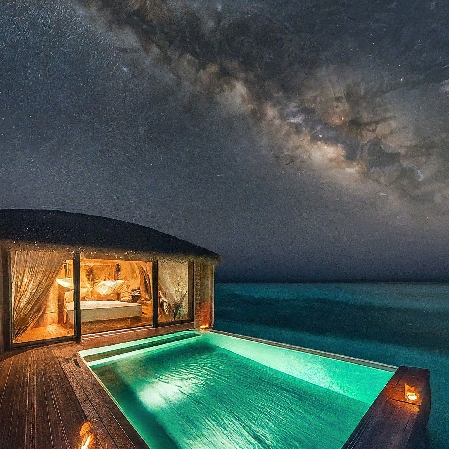 This ultra-luxurious resort offers guests a private island retreat with unmatched opulence and personalized service. Soneva Jani is renowned for its overwater villas featuring retractable roofs for unobstructed stargazing and private pools with waterslides.
